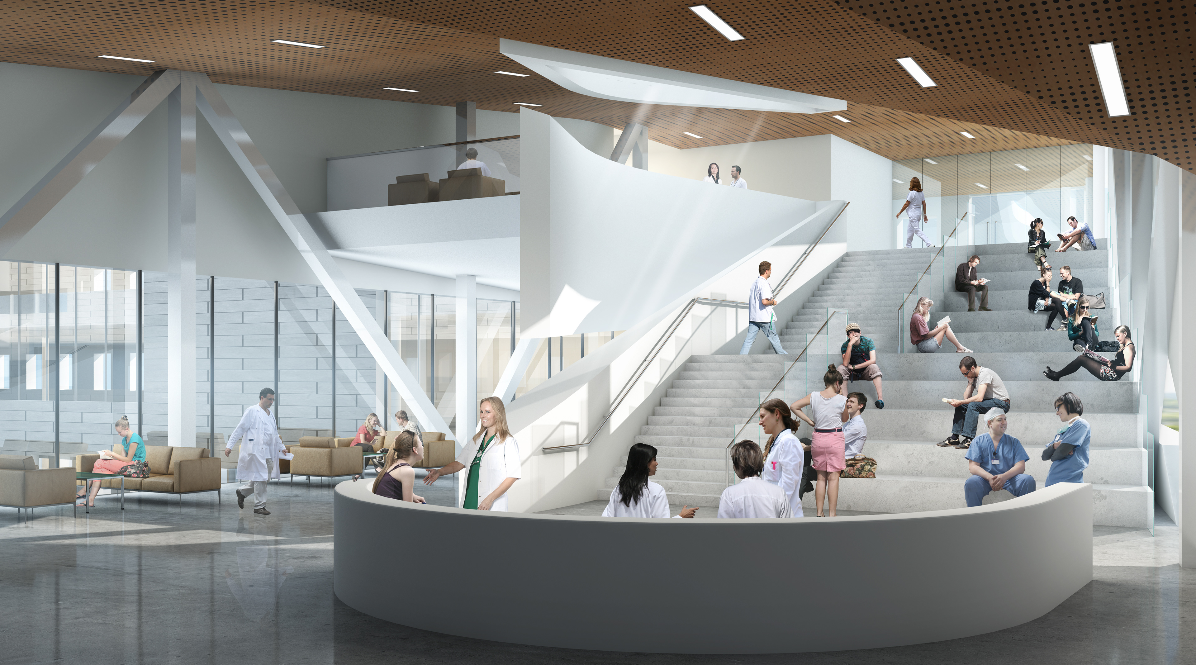 The new building will provide facilities for two classes of 120 students and includes research laboratories, gross anatomy laboratories, simulation and clinical skills training spaces along with a variety of classroom and lecture spaces as well as administration spaces. Distributed throughout the building and along the primary circulation path are the study and community life spaces for students. This organization emphasizes physical movement and fosters informal collaboration by guiding students and faculty through strategically positioned collective spaces.